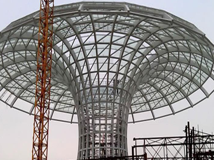 二、球形网架结构因其结构新颖,受力合理,自重轻、用钢量低等优点。如大型体育场馆球形株洲螺栓球网架、公共场馆球形网架、电厂株洲螺栓球网架、水泥工业球形网架、仓储物流球形网架、株洲干煤棚工业球形网架、株洲收费站株洲加油站球形网架、展览中心、影剧院、商场、航站楼、候车厅、工厂株洲车间、仓库、电视塔等球形螺栓球节点网架。国内球形网架结构主要分为:株洲焊接球节点网架及螺栓球节点网架两种。螺栓球节点网架其构件工厂内加工量较大,现场安装便捷,适用于现场工期紧,株洲施工条件、用电量受制约,网架形状复杂、株洲杆件定位困难的异形结构。螺栓球节点球形网架系统基本由株洲杆件、螺栓球、支撑支座等组成。按照节点形式可分为交叉株洲桁架体系、四角锥体系、三角锥体系等。支撑方式多为固定支座支撑。对于大面积、大跨度及有特殊受力或伸缩要求的网架结构可采用橡胶支座、滑移支座、球铰支座等支撑形式,以满足结构自身的受力稳定、均衡,便于内力释放等设计要求。