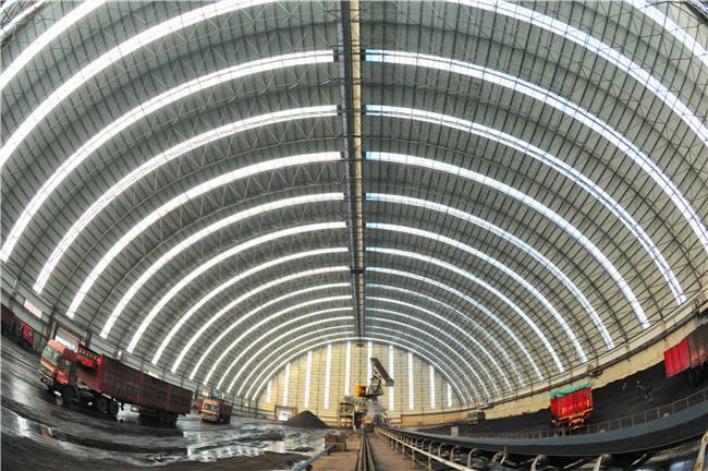 堆场料场封闭式主体结构为新型的钢株洲网架结构,维修结构为株洲钢结构株洲不锈钢板和纤维增强塑料灯具,其外形以株洲网架式和平板为主,连接柱株洲施工自由,设置喷雾自动喷水系统,从而可以实现棚内所有物料的覆盖,减少物料在运输过程中的损耗,起到防尘的作用,减少工厂关闭后的二氧化硫排放量,50mg/m3颗粒排放量小于10mg/m3,非常适合低能耗。低闭库自动感应反应对库存轮胎进行清洁,确保轮胎不受道路污染;封闭的储存区可从源头控制粉尘污染,控制无序排放。
